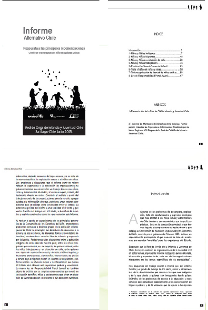 Diseño editorial para Informe Alternativo, Red de ONGS de Infancia Y Juentud, Chile.